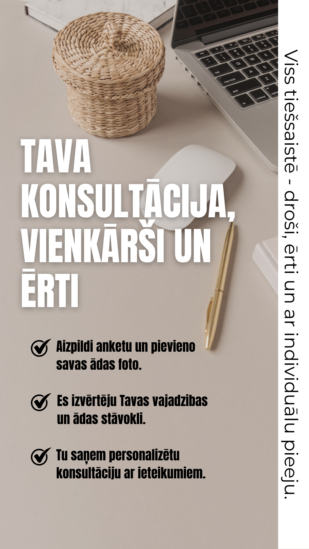 💡 Šī online konsultācija aizstāj pirmreizējo vizīti pie kosmetologa — tikai ērtāk un pieejamāk.